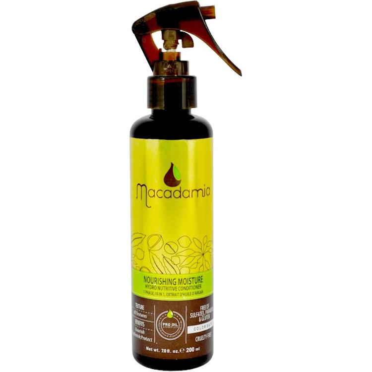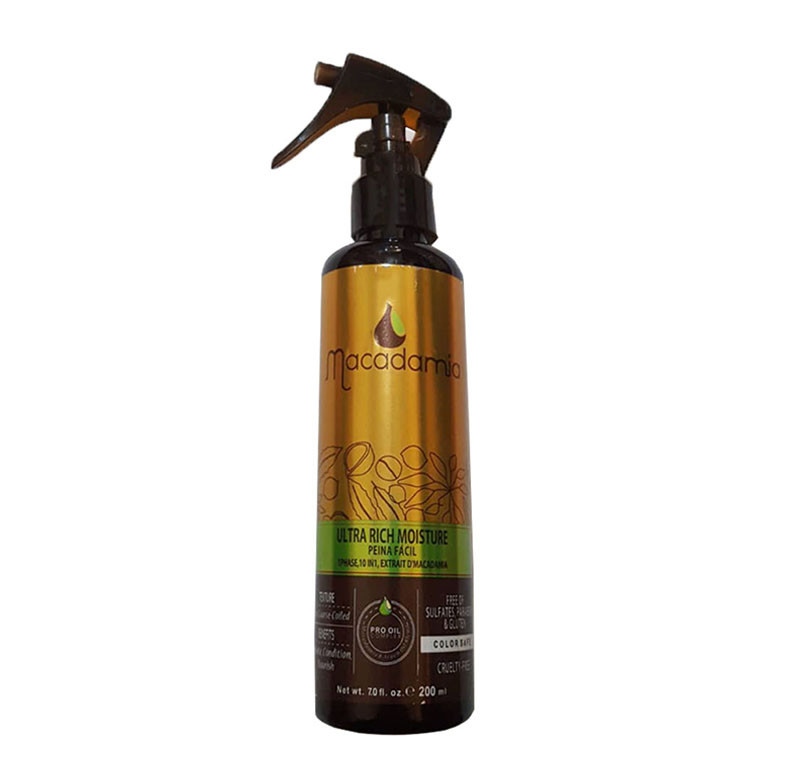 اسپری نرم کننده مو ماکادامیا مناســب مــوهای بسیـــار آسیبدیده و خشـک است. در حالتپذیری موهـا موثر است و در برابر اشعههای مضر نور خورشید از مو محافظت می کند. این اسپری حاوی روغن آرگان و روغن ماکادمیا است که هم موها را تقویت میکند و هم باعث نرمی و روانی آن میشود.